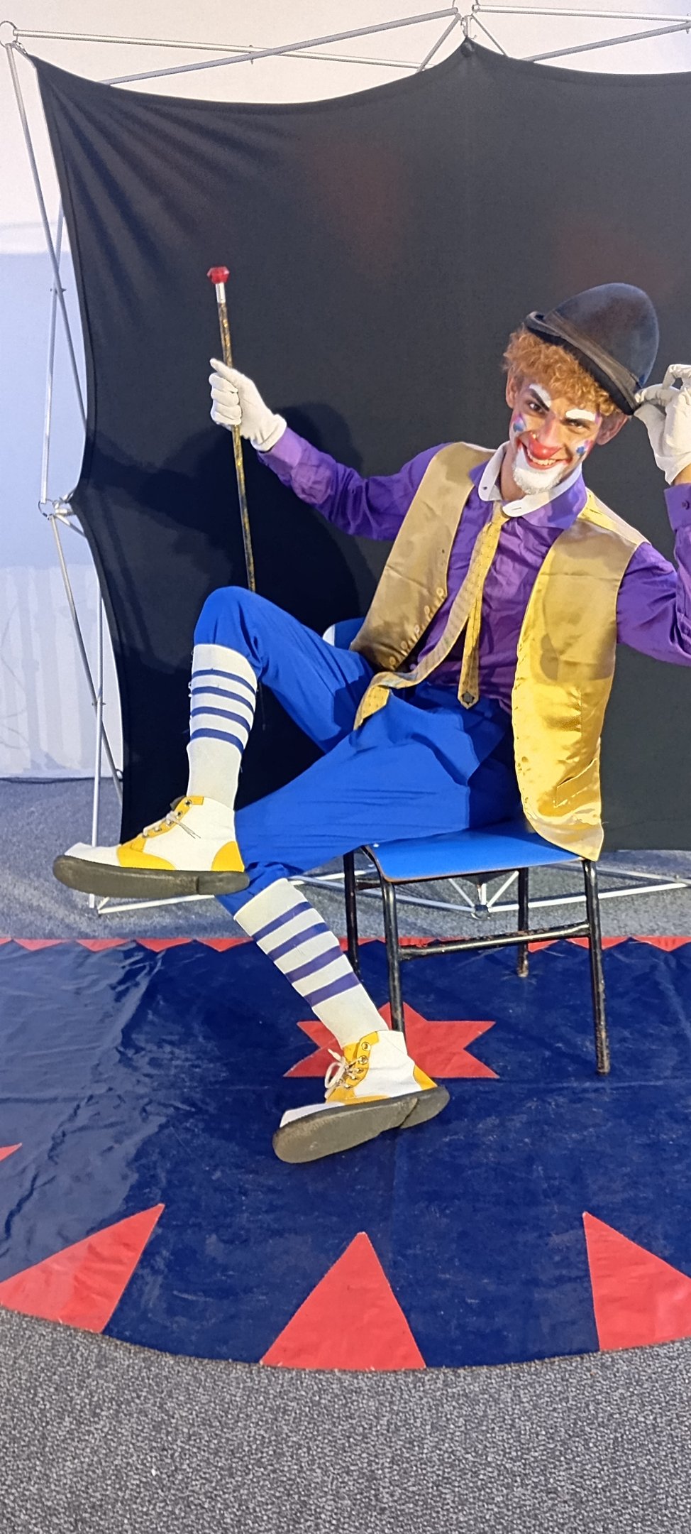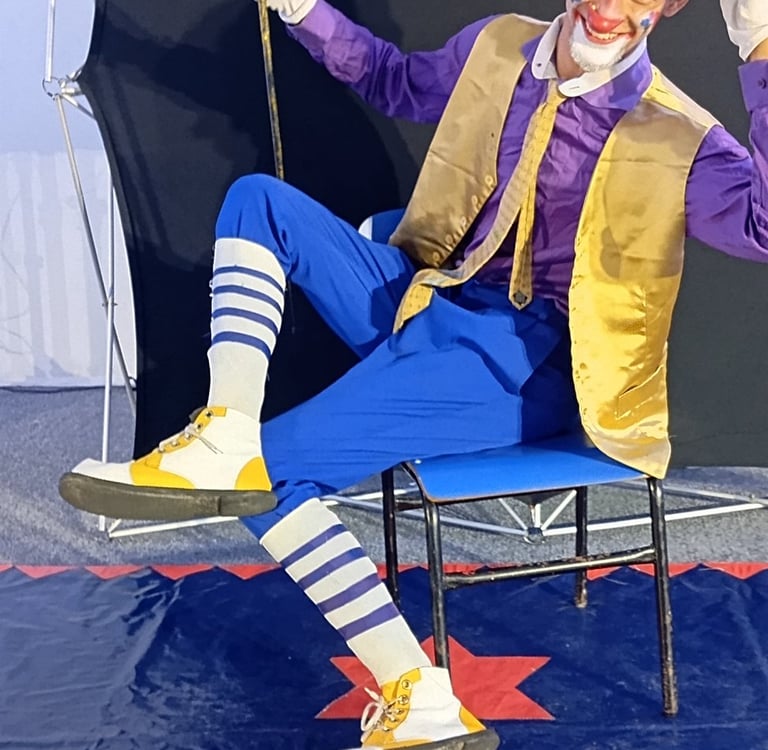 Iniciei minha aventura no ensino fundamental, ao nono ano, despertando a todos meus talentos como artista que estava escondido. Após entrar no grupo de teatro "Conexão Linha Vermelha", em 2016, como ator, entrou inicialmente como uma dupla, entrou como um simples detalhe, acabou chamando muita atenção em uma peça como coadjuvantes logo, a dupla de palhaços, mão de pano e pé atrás começaram a fazer mais aparições pelo entorno da ilha e do rio de Janeiro, até ter um espetáculo chamado "MAMBEMBARIA-palhaçaria artesanal" onde o foco era fixado em comédia física. E, logo após o grupo terminar, criei juntamente com meu parceiro e incentivador, "Os Narigudos" grupo que em base se fixam três palhaços, mas já houve troca de elenco, criado em 2018, terminando em 2023. Com conhecimento acabei estudando cada vez mais, mestrei aulas de palhaçaria, na areninha Renato russo, na ilha do governador, "improviso e a arte do jogo de palhaços", sendo reconhecido regionalmente, ao mesmo tempo que corria para dar aulas gratuitas de desenho na comunidade próxima. Alguns tempos e anos se passaram. Hoje, elaboramos um SHOW novo, com vários números clássicos e modernos de comédia, distanciando-se do que é esperado, com a quebra da expectativa e o ridículo que é o principal de tudo que conhecemos dessa arte milenar !